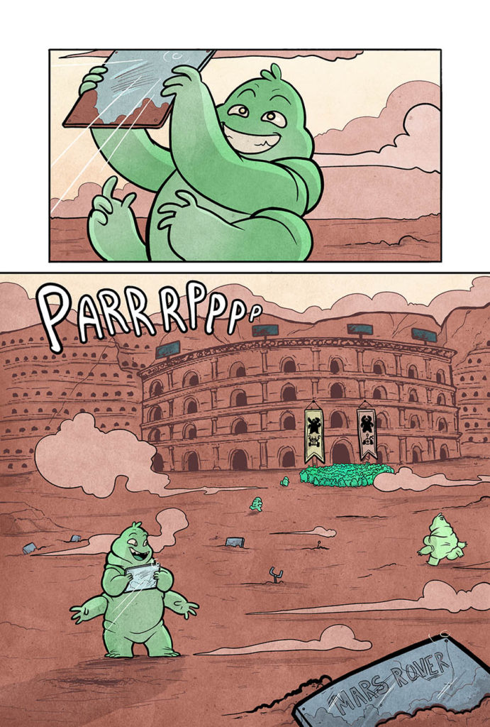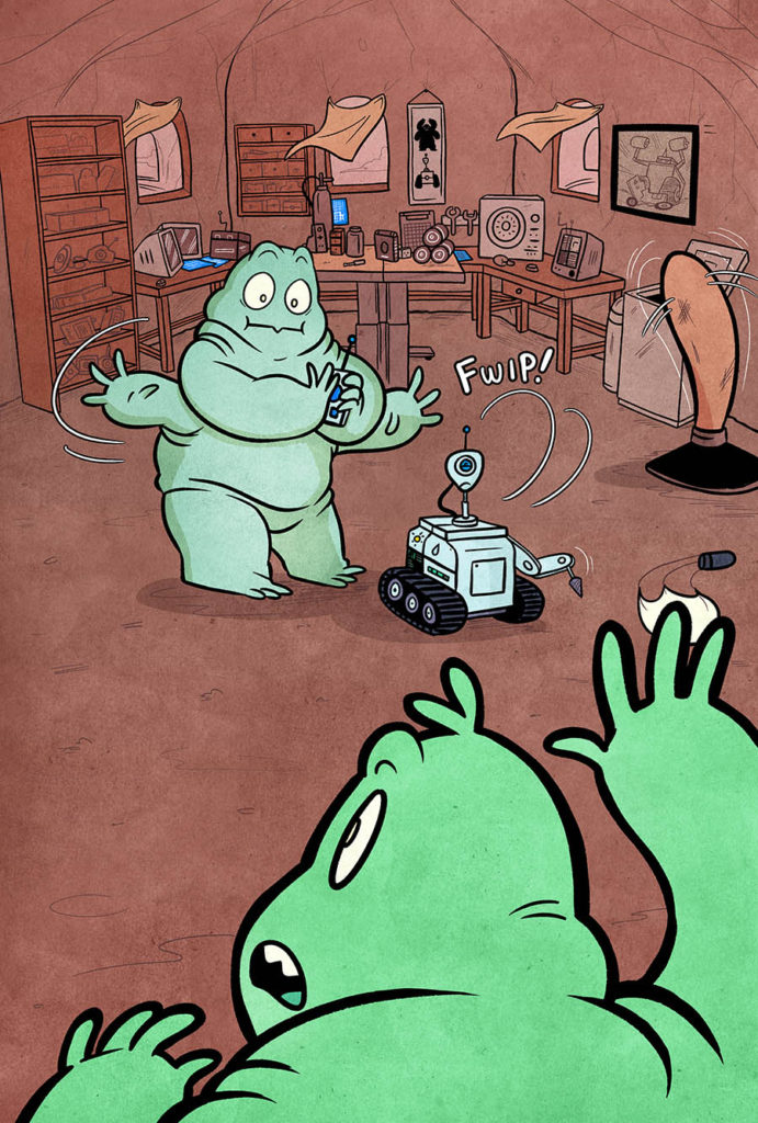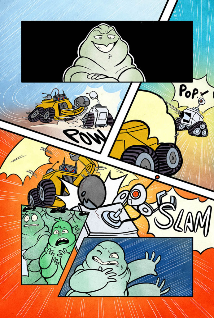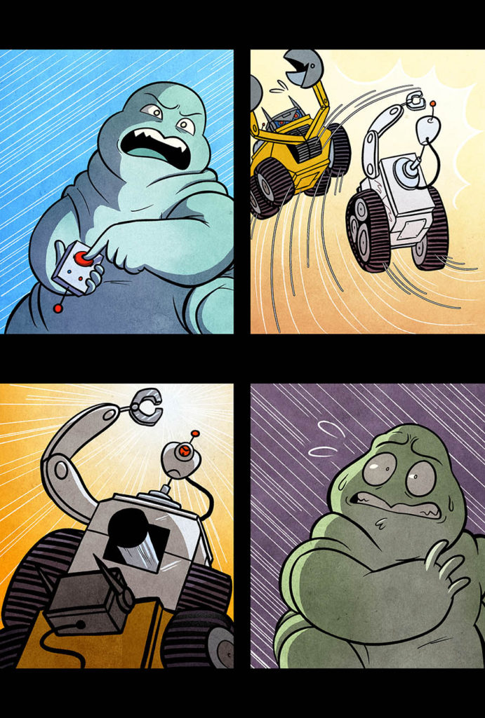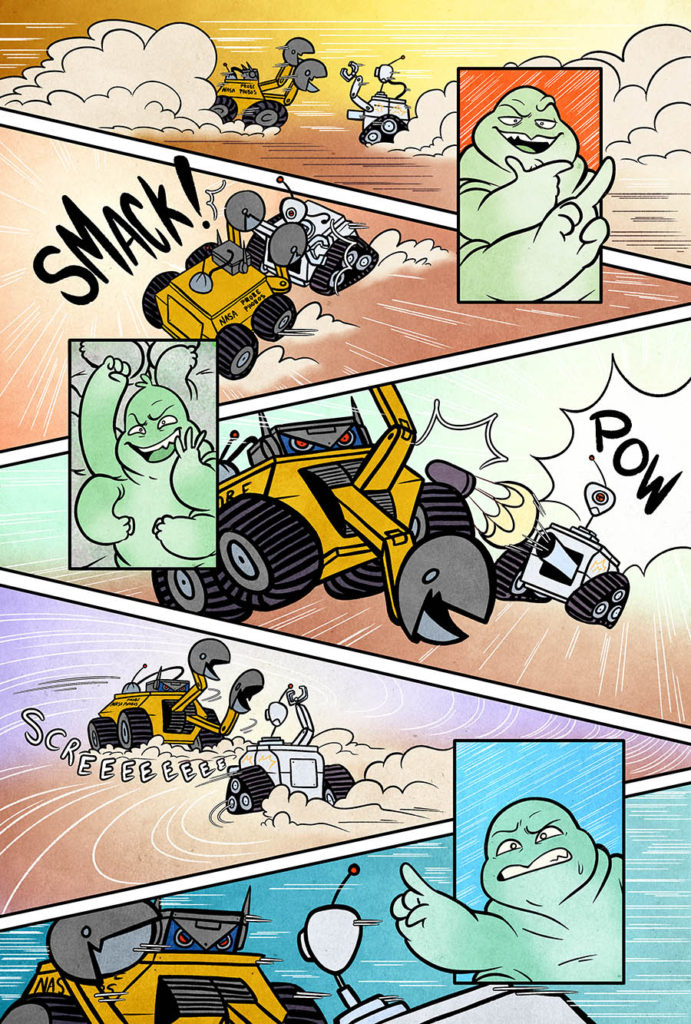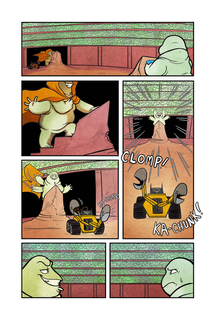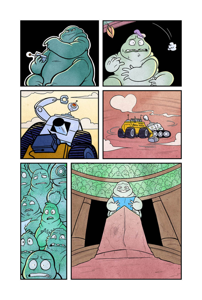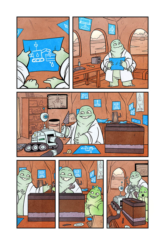 Martian engineers transform NASA’s old space junk into a robot fighting league, à la BattleBots/Robot Wars. But what happens when one martian wants to build something worthwhile in this 16 page comic.