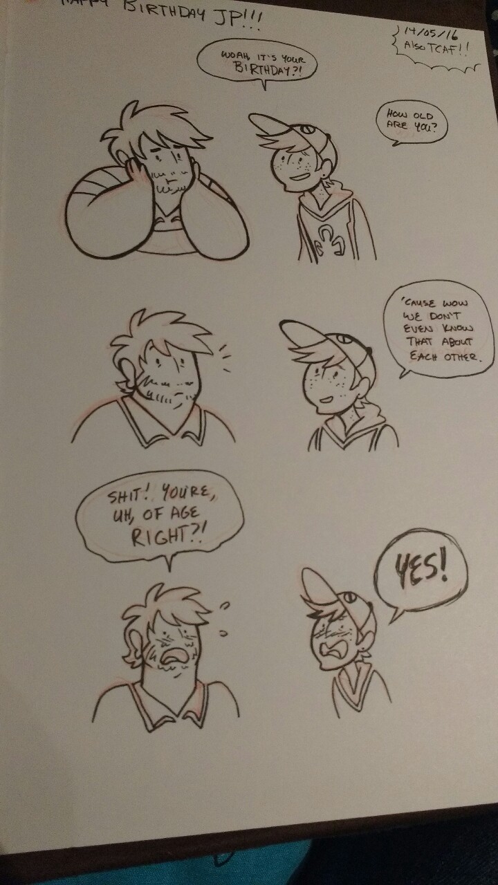 Photo of a comic I did for JP’s birthday today! I was at tcaf all day so couldn’t post earlier. Happy birthday JP!