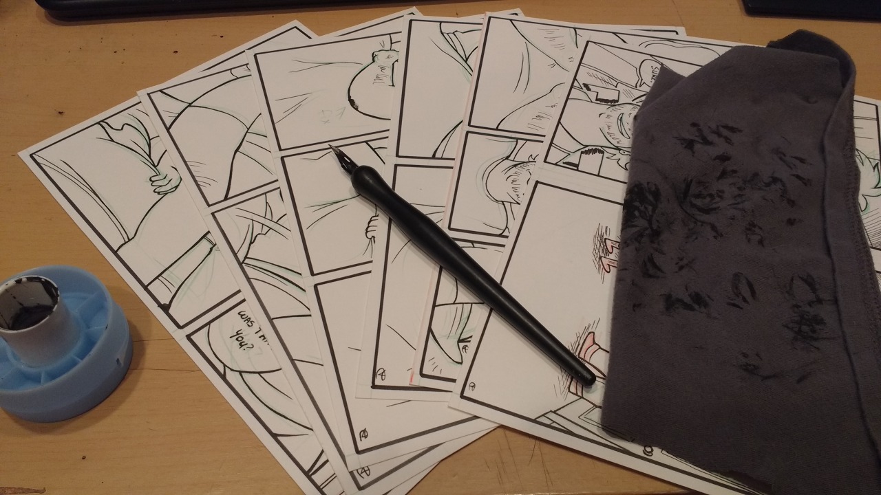 Sat down and got six pages of Dead City done today! Pulled out my dip pen for the first time in a long time and I forgot how great it was. I made my own ink well to make dipping easier and cleaner!