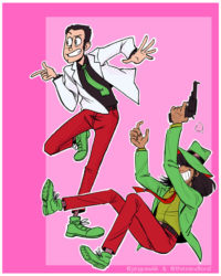 Very belated LupinIII.Club prompts from March! I post a new prompt every Monday, come and join us. March’s prompts were: hanging up art in the hideout, Zenigata goes to the spa (Zenispata), Fujiko cannot figure out what to pair with her new shoes, Zeni remembering one of his officer’s birthdays (he loves them all), Goemon secretly likes westerns.