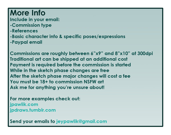 I made a new commission sheet! And I’ll be doing five commissions at a time only. Slots can be found here.