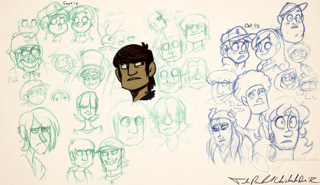 Super small sketchdump of some fanart I’ve done in my book (and some original doodles too that I liked). Also I miss my green lead, blue is weird.