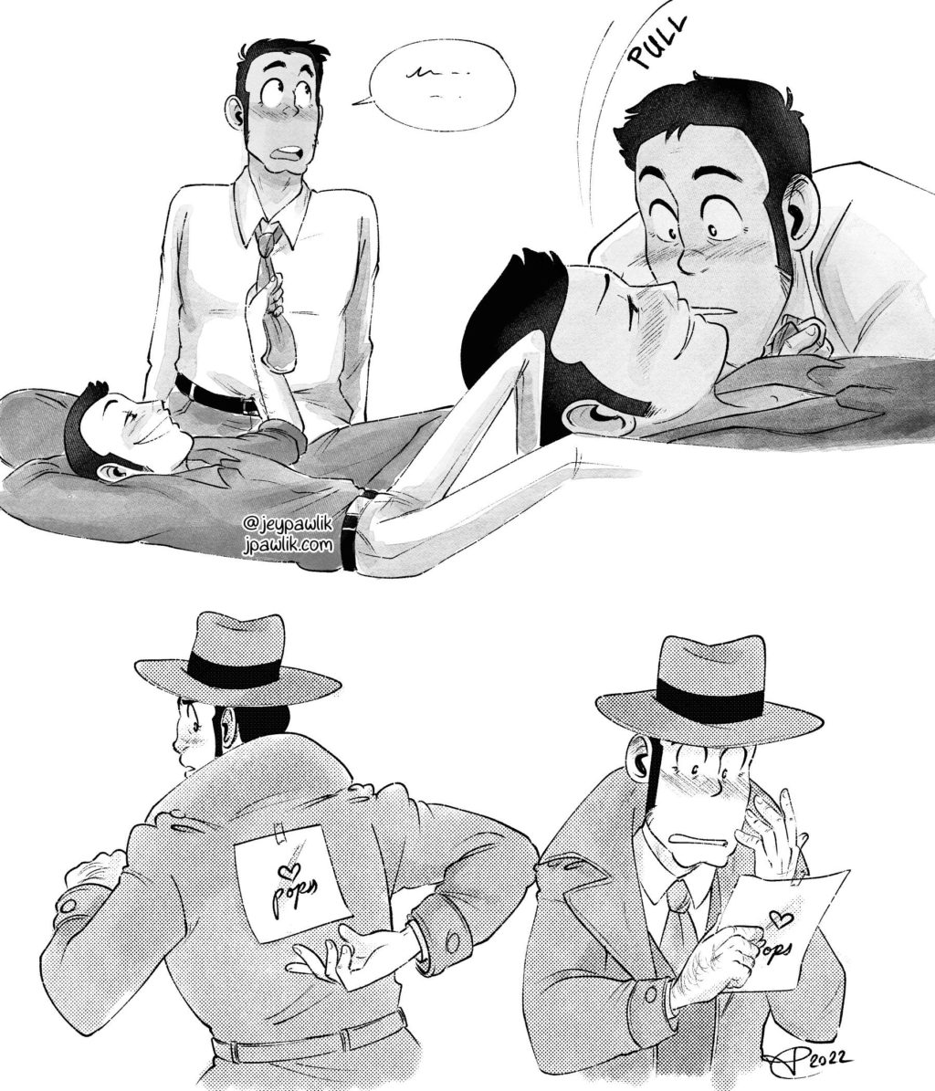 A lil’ fluff comic for my Lupin secret santa this year; @FlickyMinty on Twitter who also likes Jigen/Zenigata so I didn’t hold myself back! Hope you enjoy Minty!