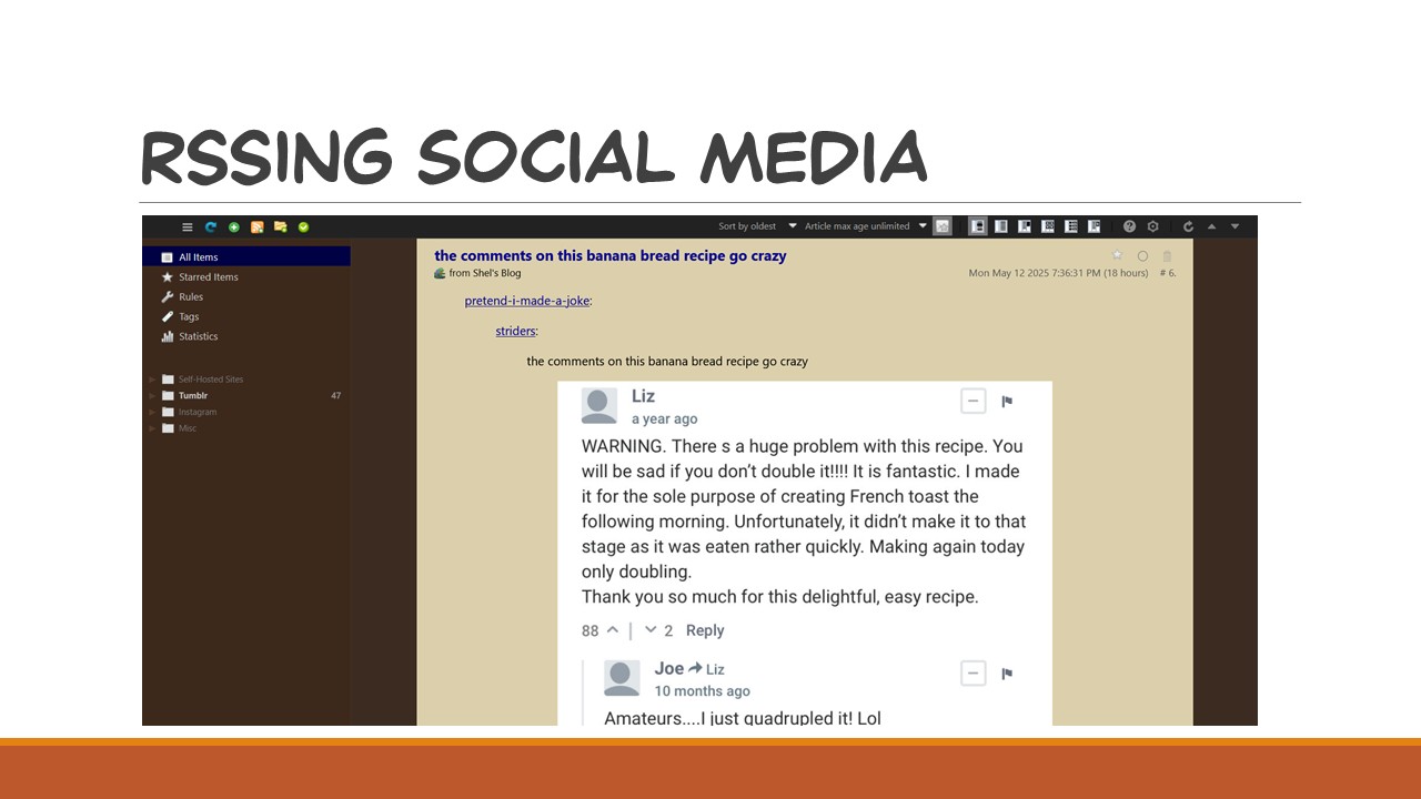 It’s a really powerful tool where you are in complete control, avoiding ads, bloat, posts you didn’t sign up to see, and not to mention not giving your personal data away. Let’s all avoid enshittification together!
