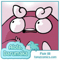 Read the latest Alola Darumaka page here! Went on a bit of a Darumaka hiatus this month to post some fanart comics instead. If you’re new you can start reading here: Alola Darumaka it’s a free to read 4-koma comedy comic about Darumaka and her partner Daven who’ve moved to Alola from Unova. Hijinks happen but it’s all in good fun!