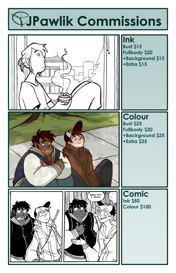 I’m an avid commissio user, it’s a better way to do commissions than through paypal – I feel a lot safer. But if you have any issues and would like to do the commission through paypal invoice, or if there’s something not listed that you’re interested in, please email me: jeypawlik(at)gmail.com