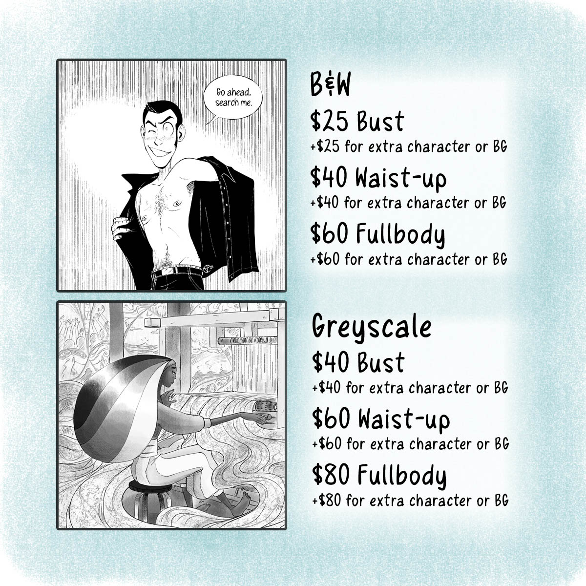 I’ve opened up for commissions, click on over to my commissions page for more info and how to request one!