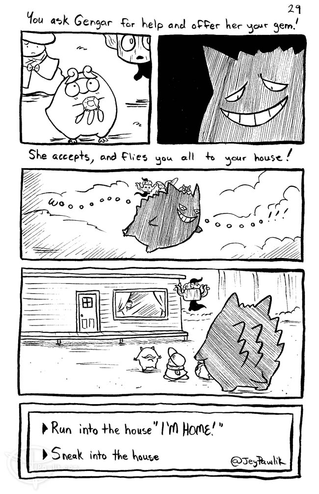 Gengar flies all of you to your house, what do you do?