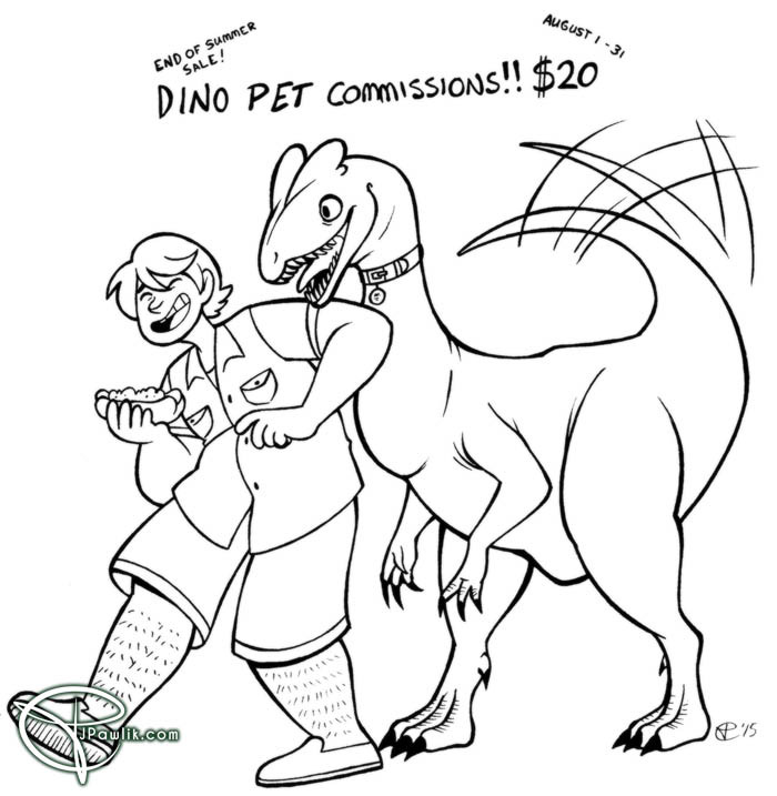 I’ll be doing $20 ink commissions of you, your OC, any character with a dino of your choice! How will your dino pet be?