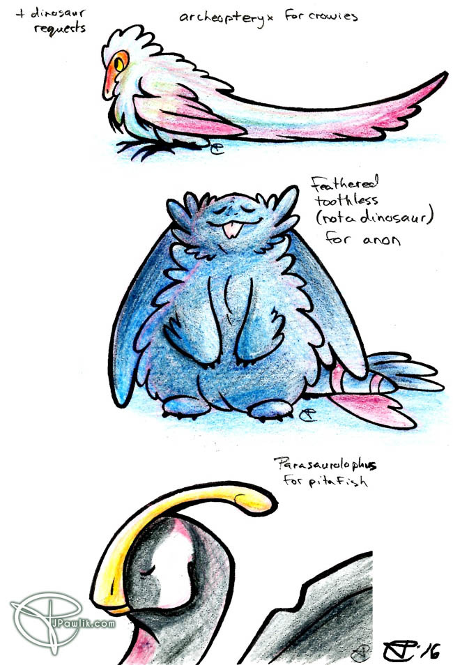 Dinosaur pet commission with an oviraptor! Full shaded colour and another character was $35.