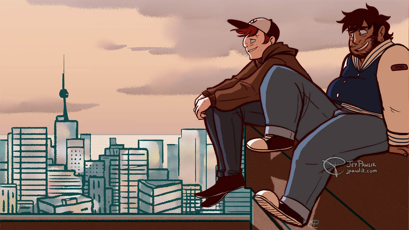 I really like the Humber Bay bridge but I remember drawing this a few years ago and it was a huge pain. Here’s some sunset Dead City boys for you.