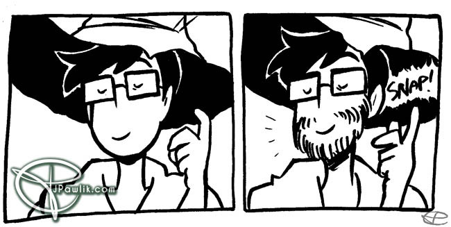 I have oh so many comics about trans joy over on ohjoysextoy.com/category/jeypawlik and I am so grateful to Oh Joy Sex Toy for giving me so much space to autobio about being trans!
