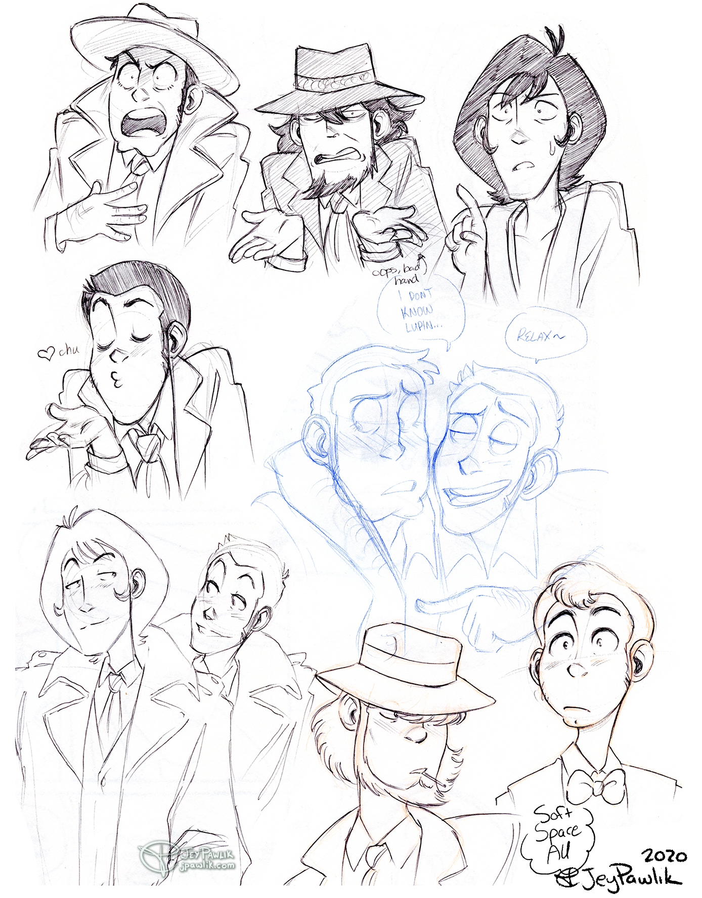 Sketchpage inspired by a gifset on tumblr that I cannot for the life of me find now but it seemed so in character I couldn’t help myself. And some Lupin VIII soft boys!