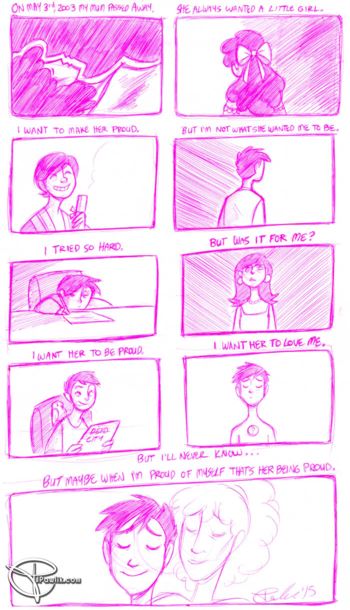 Just a sketchy comic about my emotions today and lately. About myself, about my gender, about who I am and how I got here. About my mum and what she might think of me now. Thank you to Steven Universe for making me feel like my mum is happy with me. (see Lion 3: Straight to Video)
