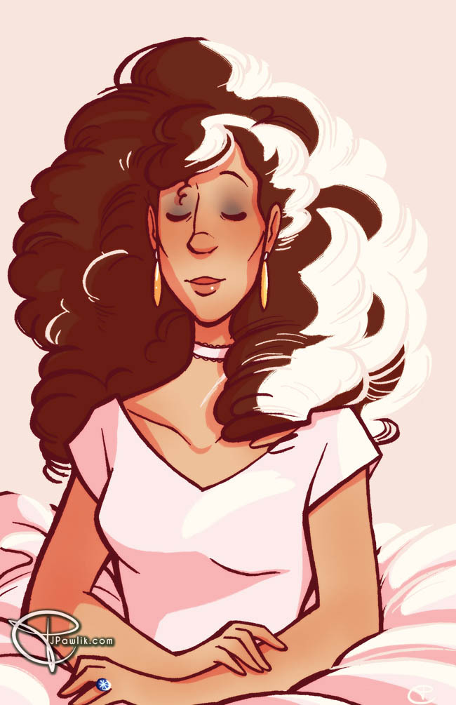 Happy birthday to my mum in an drawing inspired by that large portrait of Rose Quartz. I have a lot of feelings about when Steven looks up at it. I miss my mum a lot, she would be 61 today and I miss her more than anything.