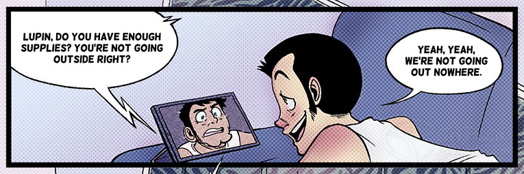 A preview of my piece for Allison O’Toole’s #animequaranzine where, of course, I did a piece of the Lupin the Third crew entertaining themselves in the pandemic while Zenigata checks up on them. I’m super proud of it and there’s so much good art in this zine, be sure to preorder it over at http://animequaranzine.com/