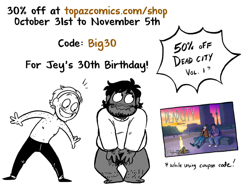 It’s Halloween AND Dead City’s 7th anniversary! If you want a completed webcomic to read today check out Dead City on Topaz Comics!
