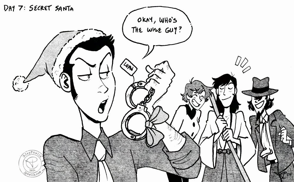 This’ll be my second year helming the weekly prompts over on lupiniii.club and it’s been so much fun! Here’s the ones I drew up for January: a married couple disguise, Jigen is very particular about his shampoo, audience participation, and Lupin tells the waiter it’s Jigen’s birthday when it isn’t.
