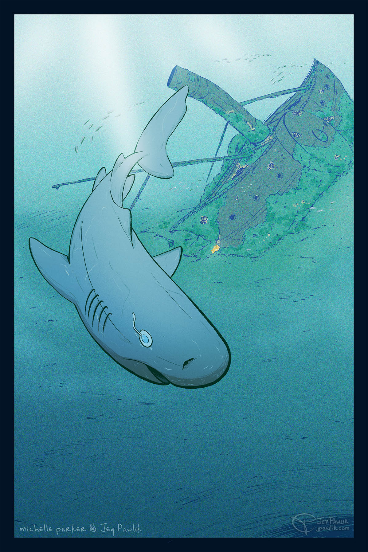 - A shark must be the focus of the piece (humans & other animals are allowed to be present)