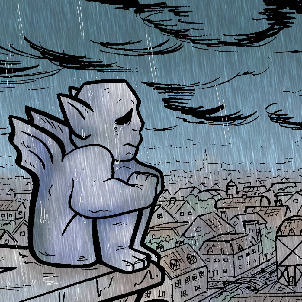 A 9 page comic about a gargoyle and a pigeon, their love, their betrayal, and moving on.