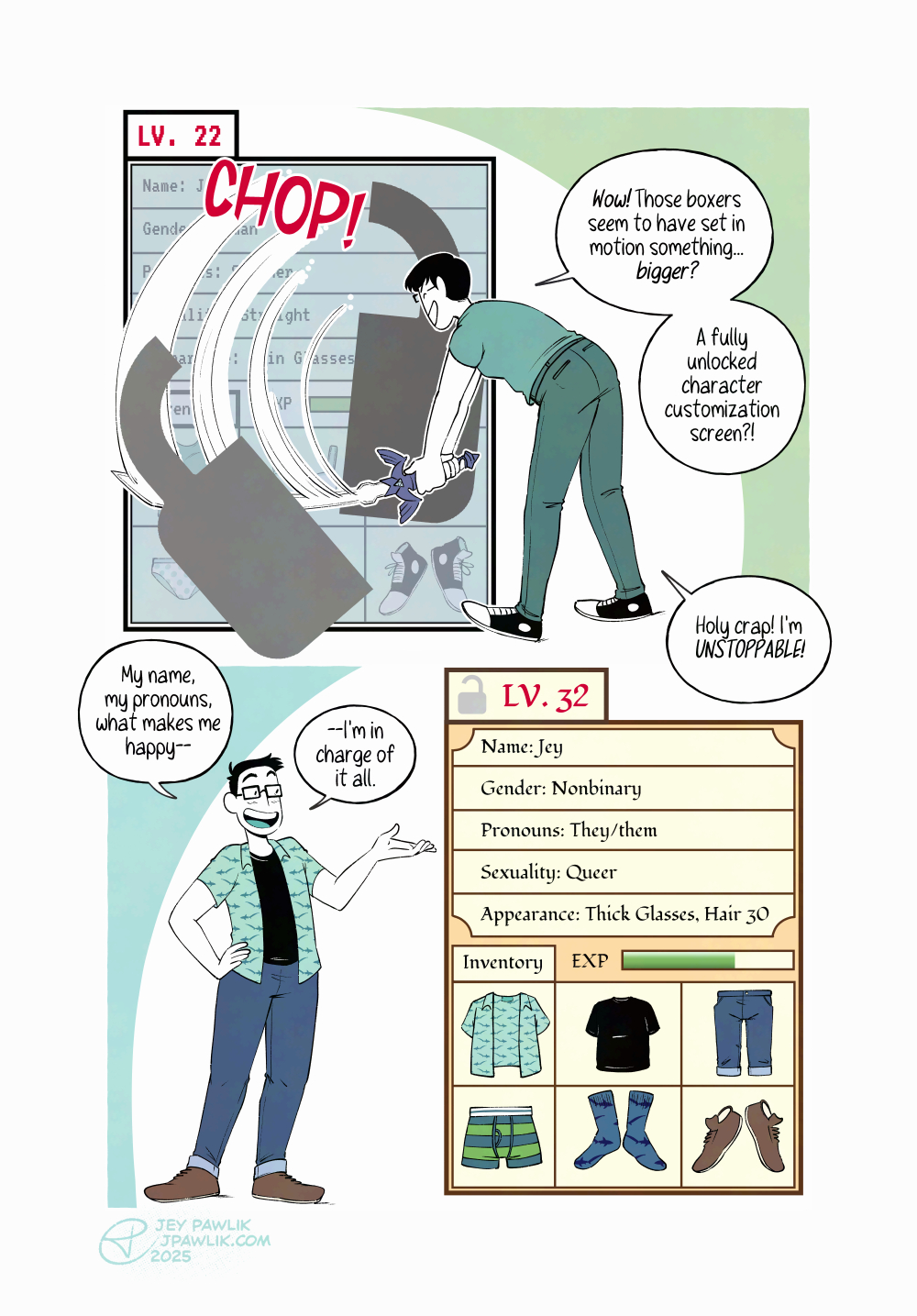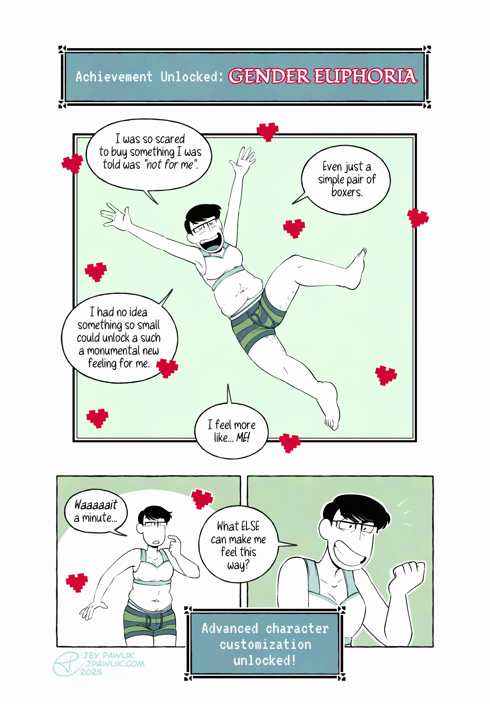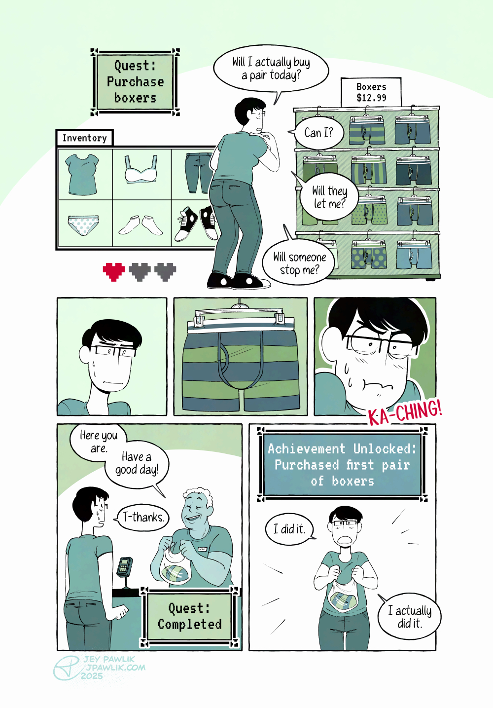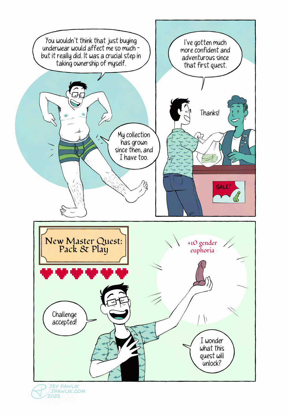 Who’da thunk it, that buying a little pair of boxers could really shift my entire view on what I could change about myself. A 5 page comic for Oh Joy Sex Toy.