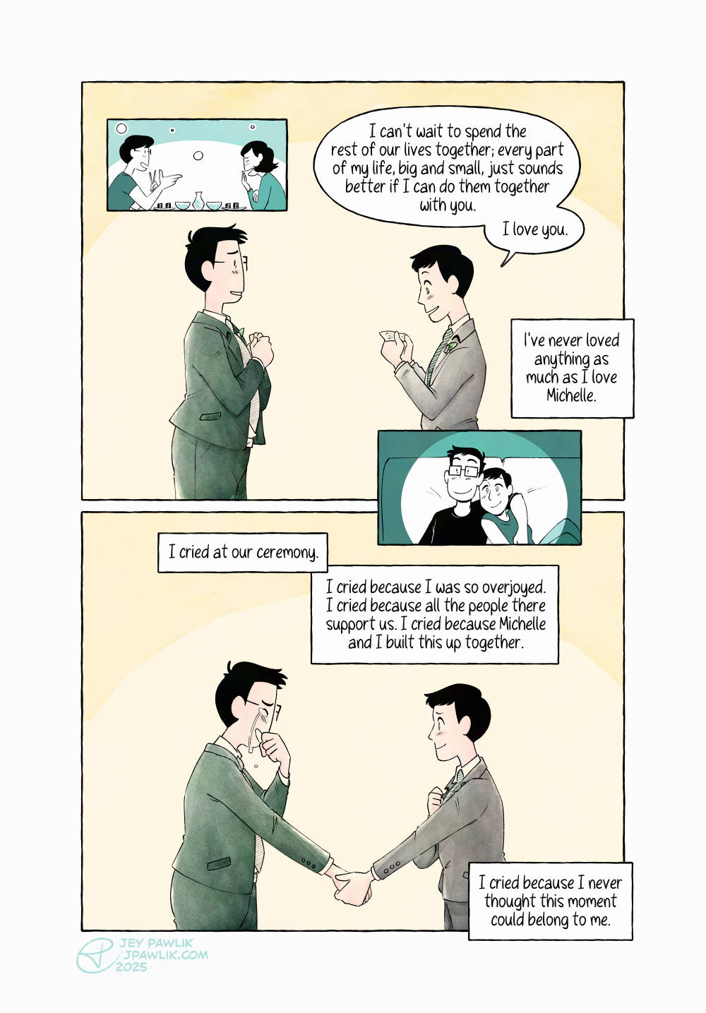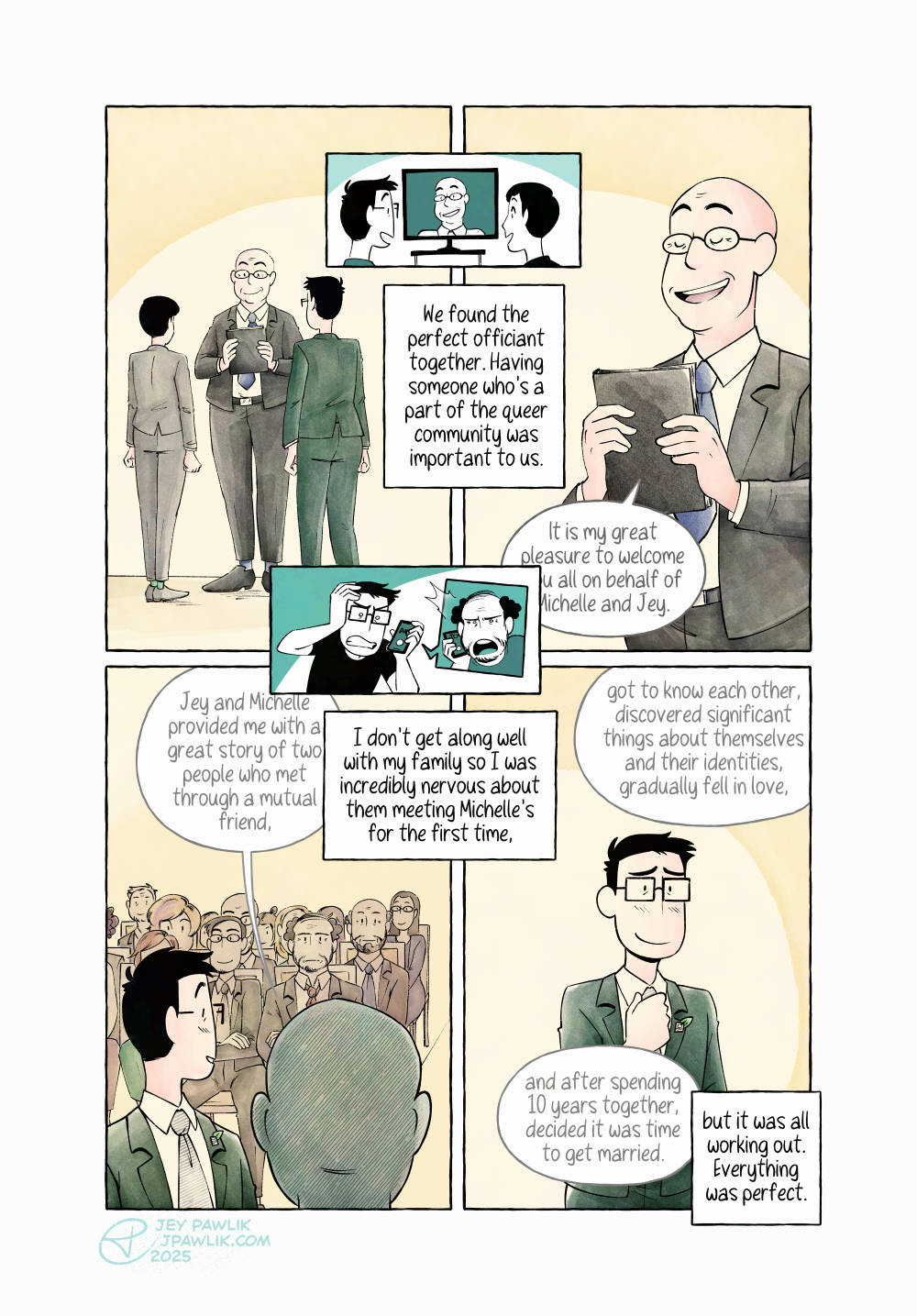 I never thought I’d get married, but after over a decade together my partner and I decided to tie the knot. A 5 page comic for Oh Joy Sex Toy.