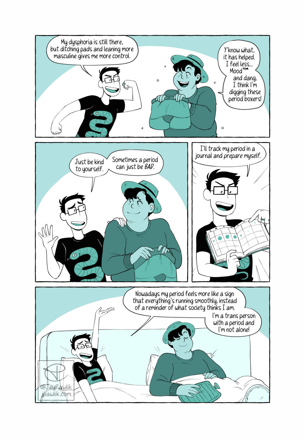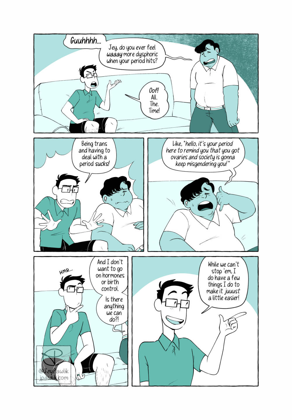 Getting your period can really suck, especially if you’re trans. I talk about fighting monthly dysphoria in this 5 page comic for Oh Joy Sex Toy.