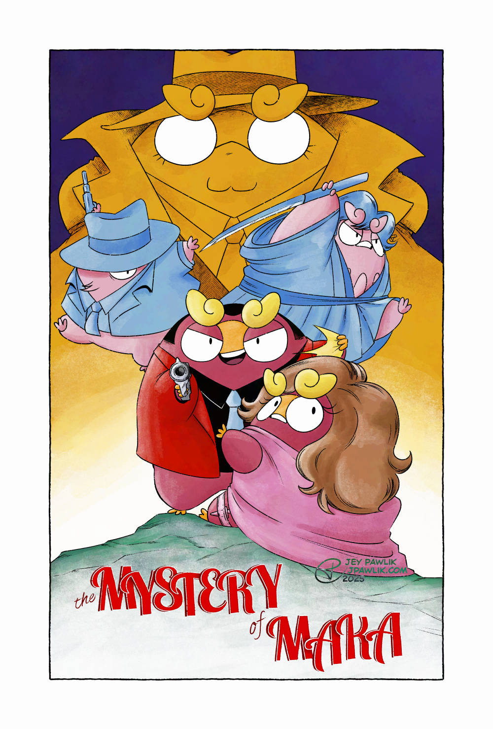 My first illustration of 2025, I want this to set the vibe for the year, art for fun! Enjoy this very real Mystery of Maka poster, coming to a theatre near you.