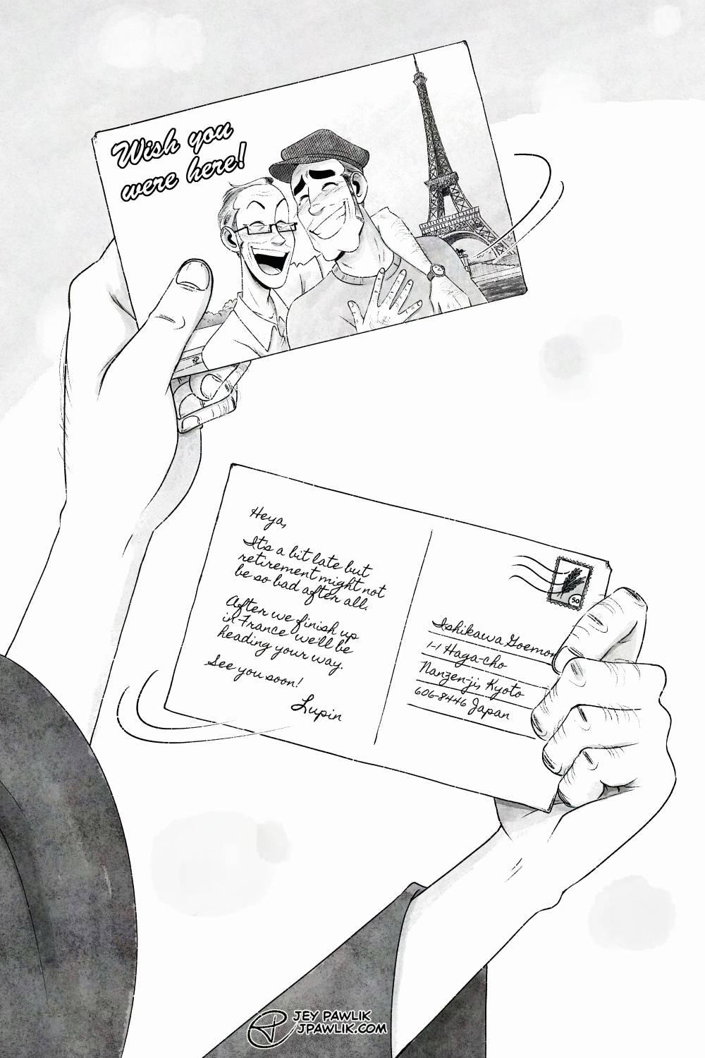 I’ll be posting the PDF for Patrons as soon as I’m able and will hopefully have the book done in time for TCAF on June 7th, which afterwards it’ll be available in the Topaz Comics shop and will come with a coloured version of the postcard featured on this page!