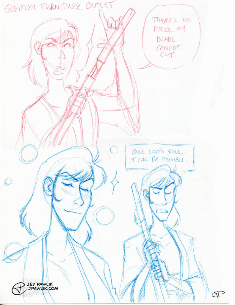 I promise I do draw Goemon from time to time. Here’s some jokes and redraws! And a Lupin for my good pal Amiel for his birthday this year!