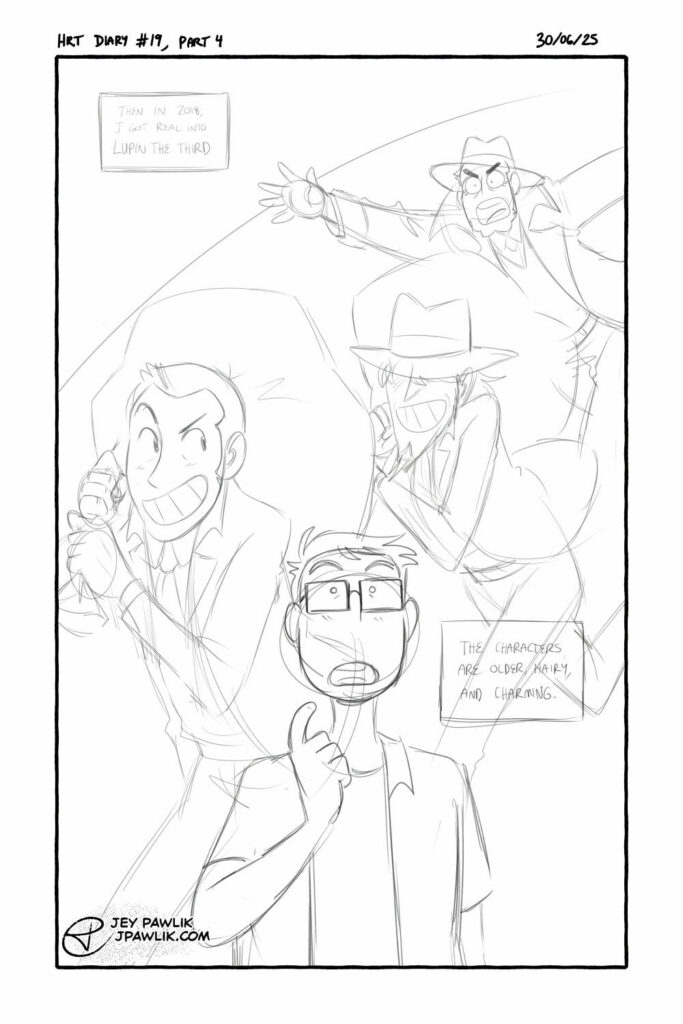 All ArtPrivate CollectorGrab BagComics comicearly accessgender slicesgrab bag only HRT Diary – 19 Jul 8, 2025Jul 8, 2025 Part 4 of 5, of my HRT Diary where I’m talking about HRT and expectations. It’s time for me to talk about LUPIN! Related Posts Spicy Q&A #6 Jigen Treasures of Time – 12 Jigen Now and Then – 2 Categories All Art Comic & Zine PDFs Comics Fanart Grab Bag Lupin III Original Characters Private Collector Sketchbook PDFs The Curse Eater Zines & Anthologies