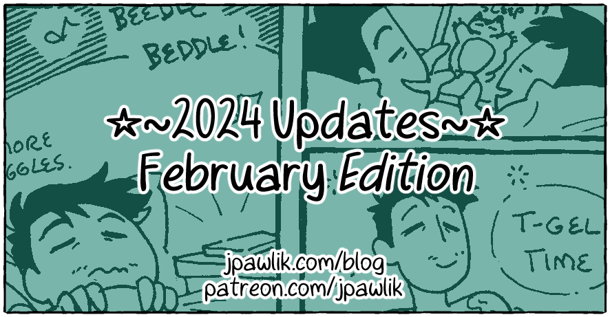 Happy February everyone, this month came and went so quickly, but I’ve got some art and comic updates for y’all! Want some good ways of getting these newsletters? I got you covered (they’re all free forever!) Blog | Patreon | RSS | Mailing List