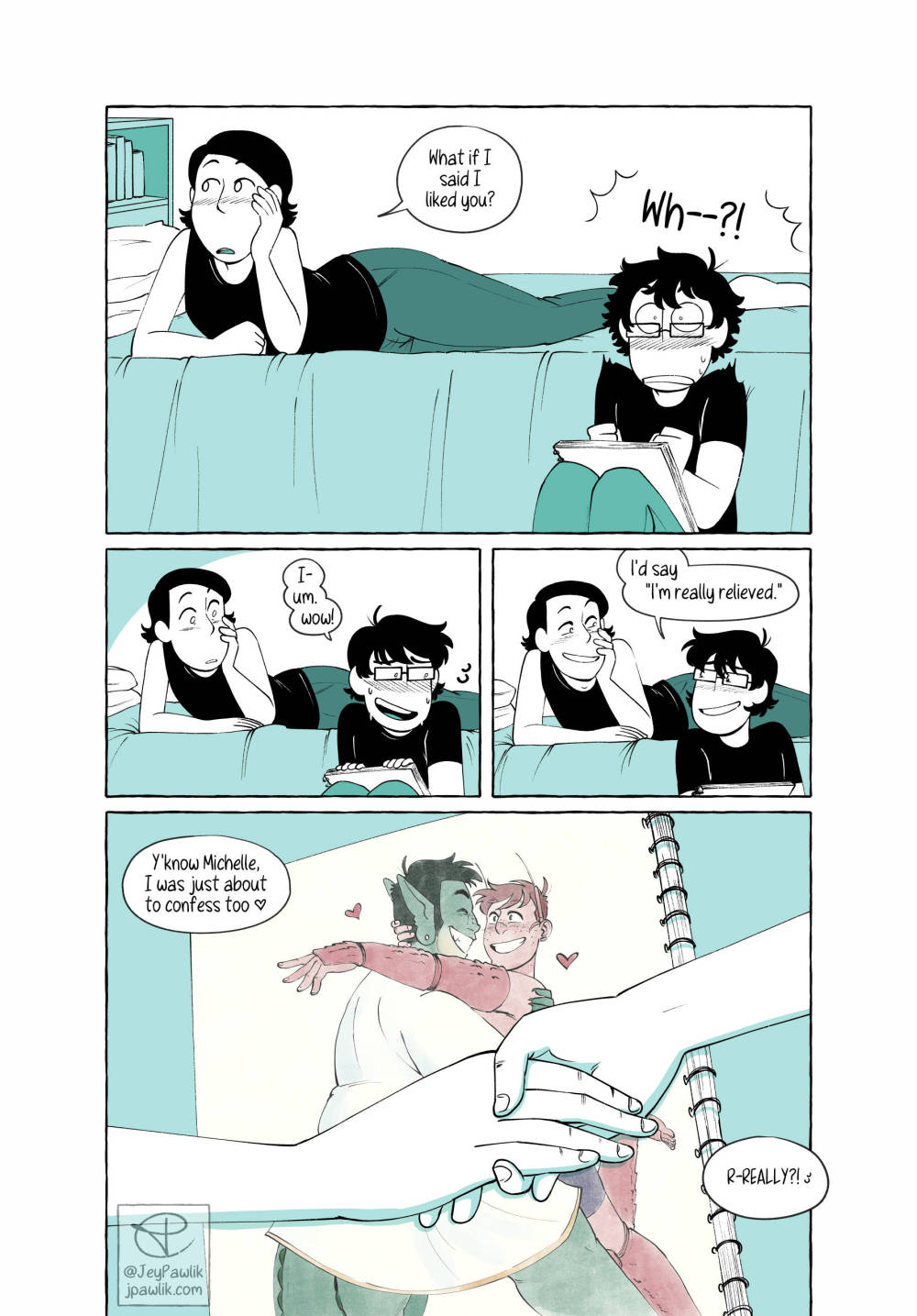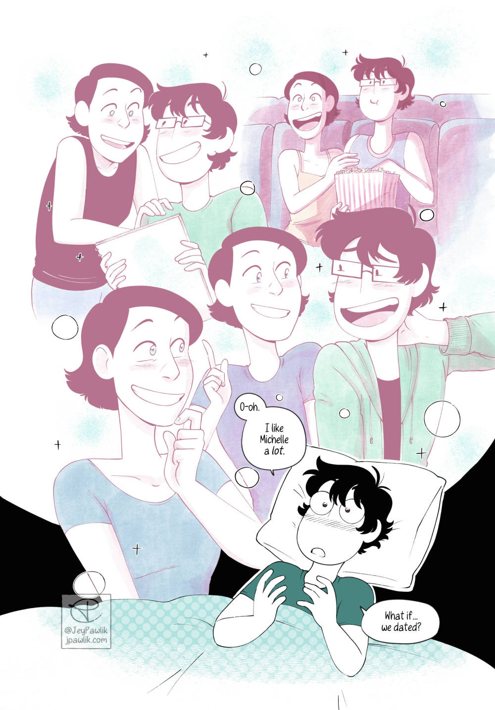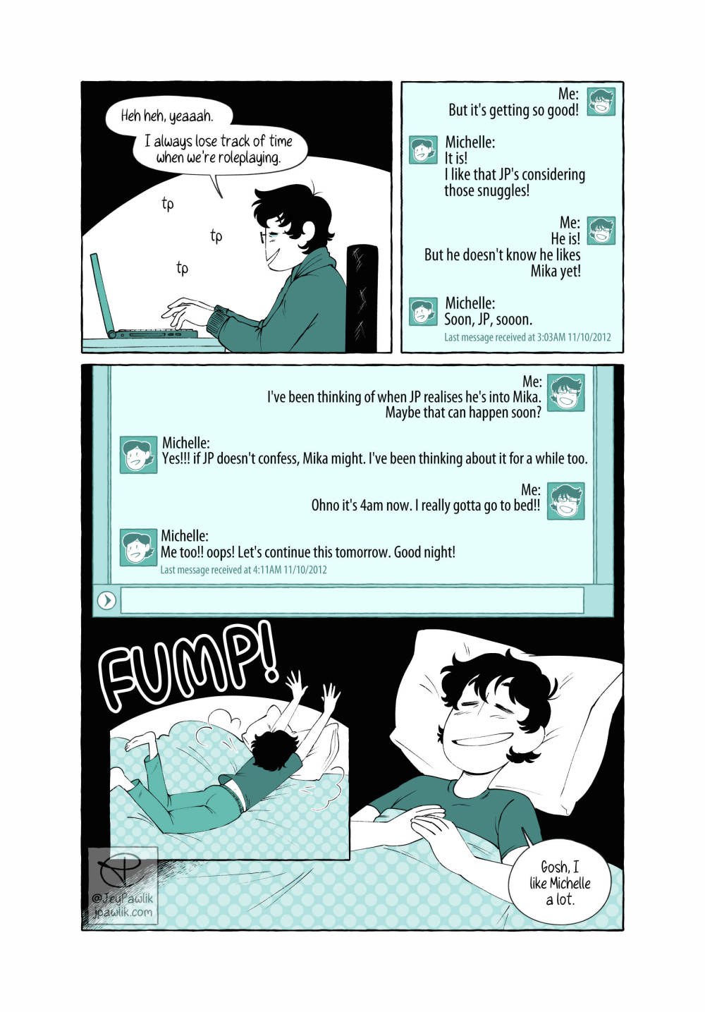 A short comic on how my spouse and I begin dating back in 2012 after getting to know each other through online roleplaying. A 5 page comic for Oh Joy Sex Toy.